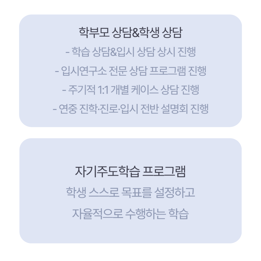 ‘하루 단위 계획 → 실천 → 피드백 → 다음 계획 반영’의 순환을 통해 학생 스스로 공부 루틴을 형성하고, 스스로 학습할 수 있는 힘을 길러갑니다.