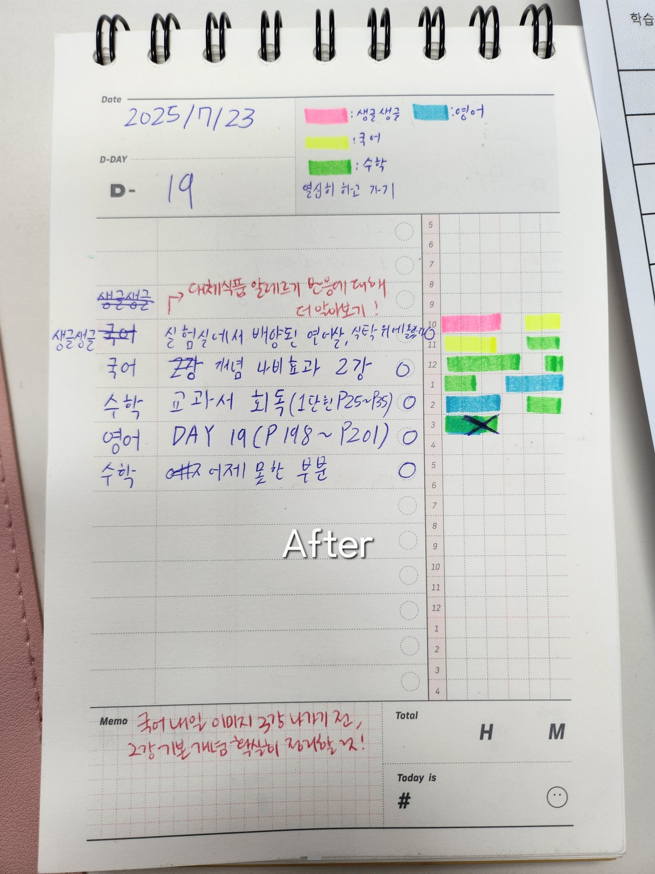 하지만 이렇게 ‘구체적이고 실현 가능한 계획’으로 매일의 흐름을 짚다 보면, 집중력과 성취감은 자연스럽게 따라오게 되죠.